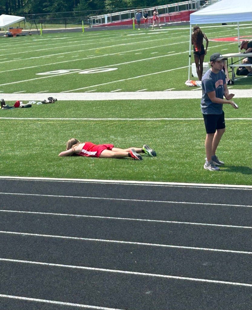 Upon arriving in Wise, I had to instantly start warming up for the relay, it was the very first running event of the day. Me along with my distance team made our way towards the start, not expecting there to be an hour long delay. After stretching in the blistering heat for what seemed like eternity, we were called up to run. I took as much cold medicine as I possibly could hours before and was putting all my efforts into bringing this relay to states for the second time this year. We were seated fourth in the region and needed to finish within the top three to advance to states. Sure enough, we ran like we were being chased by a cheetah on cocaine. We finished first in the region. Little did I know, that would not be the most exciting event of the day. I went ahead and pulled out of my mile competition knowing my lungs would not be capable of running a state qualifying time.